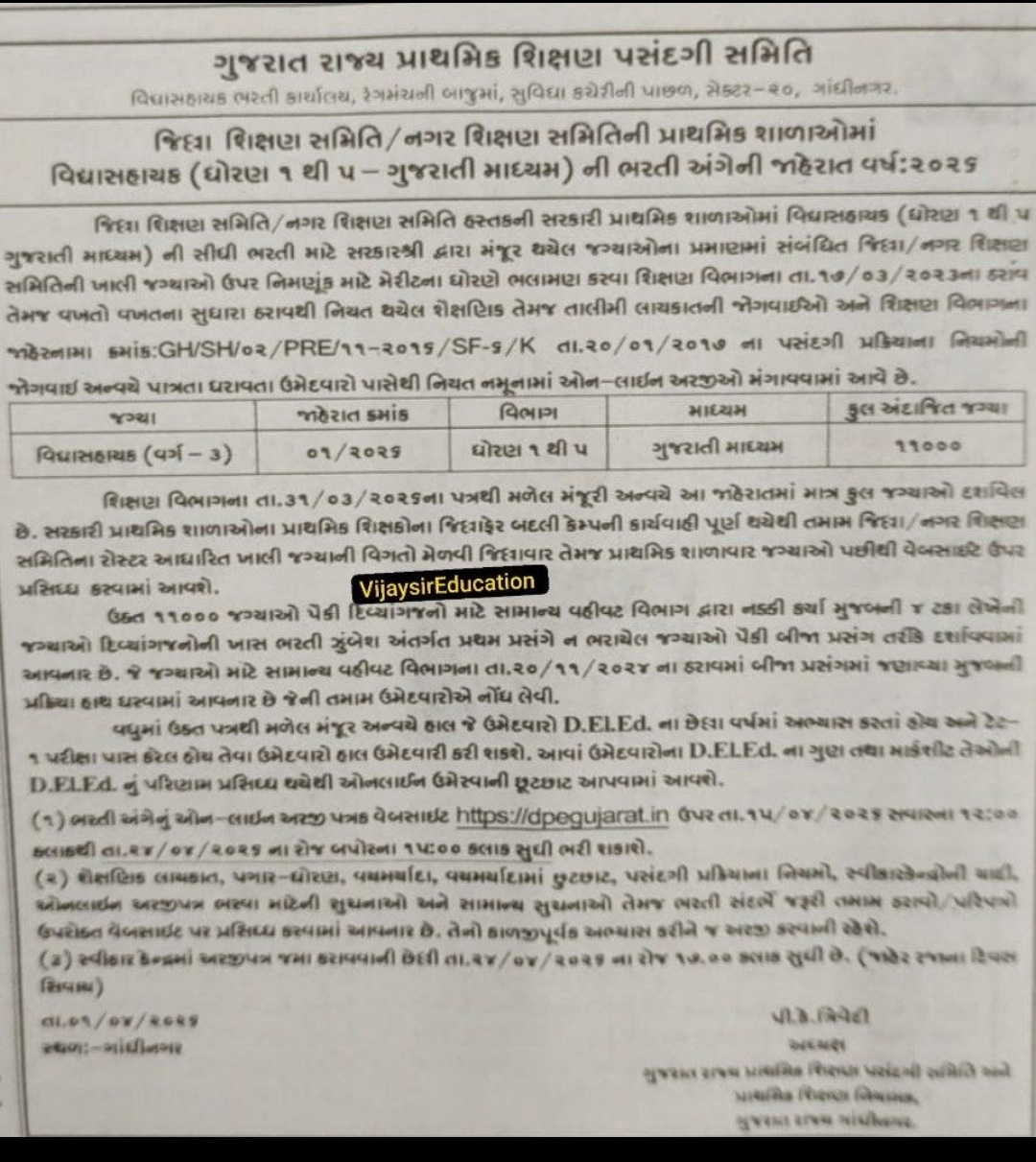 લાયકાત: શૈક્ષણિક અને તાલીમી લાયકાત (D.El.Ed. / TET-1) સરકારના નક્કી કરેલા નિયમો મુજબ હોવી જોઈએ.