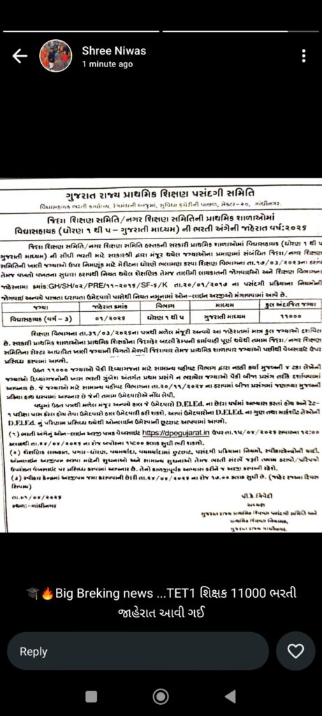 🎊11000 #TET_1 શિક્ષક ભરતી જાહેર 🎉